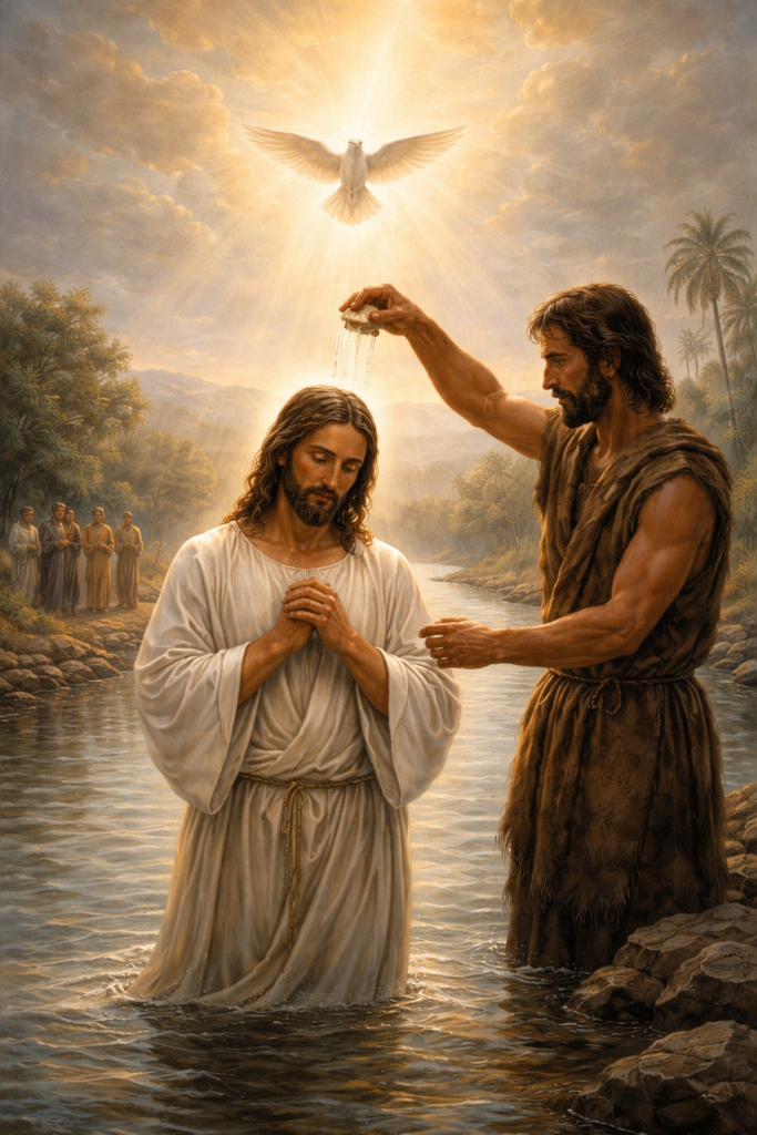 Jesús se acerca al Jordán. No se impone, no exige, no se separa. Hace fila con los pecadores. Entra en el agua como uno más.